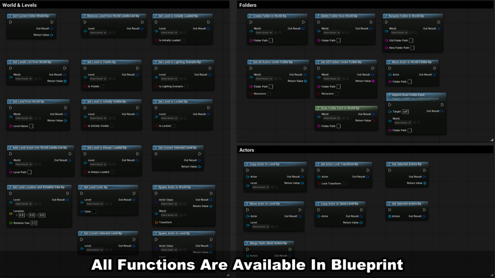 Plugin containing 10+ functions and 30+ editor functions to help create Levels and manage their content